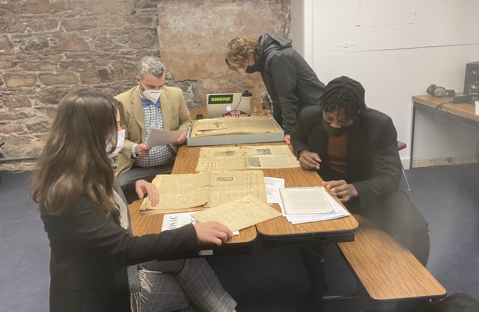 Hoosac School students taking Podcasting and Audio Production had an opportunity to use primary resources made available through the Hoosick Township Historical Society in their research into LeGrand Tibbits this term.