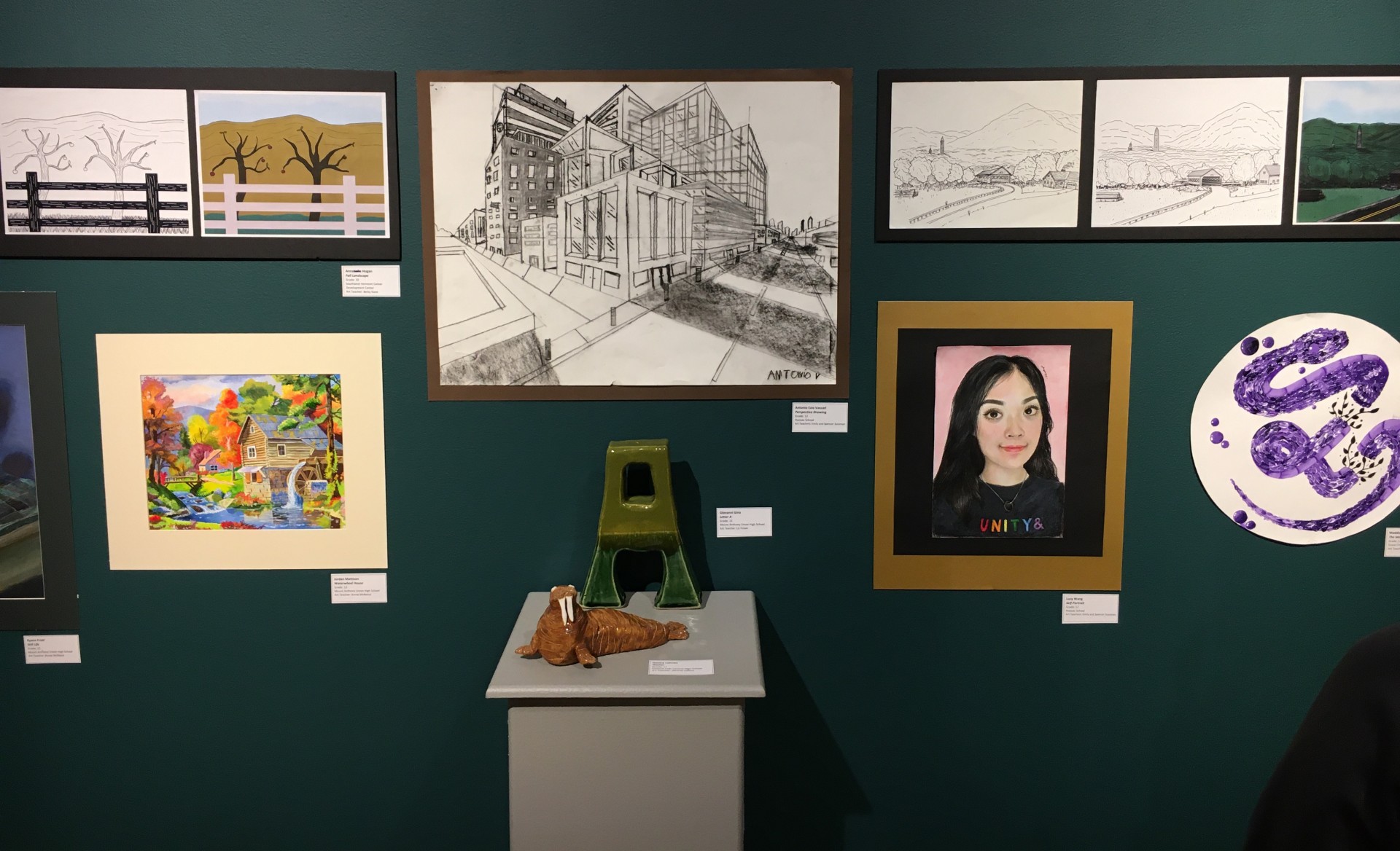 This year Hoosac School has FIFTEEN students from Mr. & Mrs. Sussman's 2D & 3D classes with artwork on display in the Parmelee & Limric Galleries in The Bennington Museum!